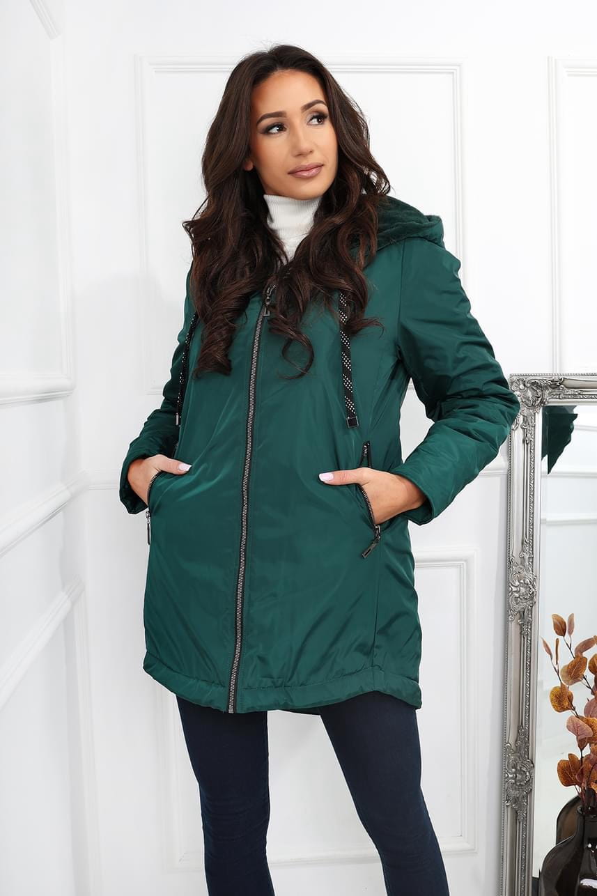 Kurtka ortalionowa butelkowa zieleń - z kapturem - Dina